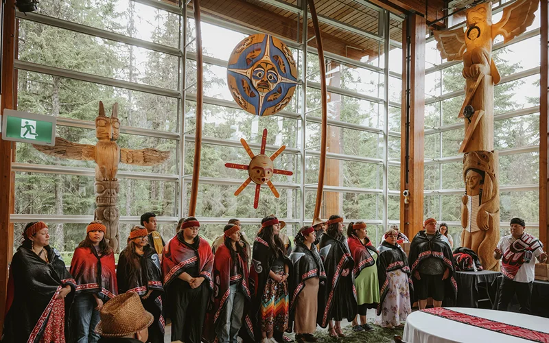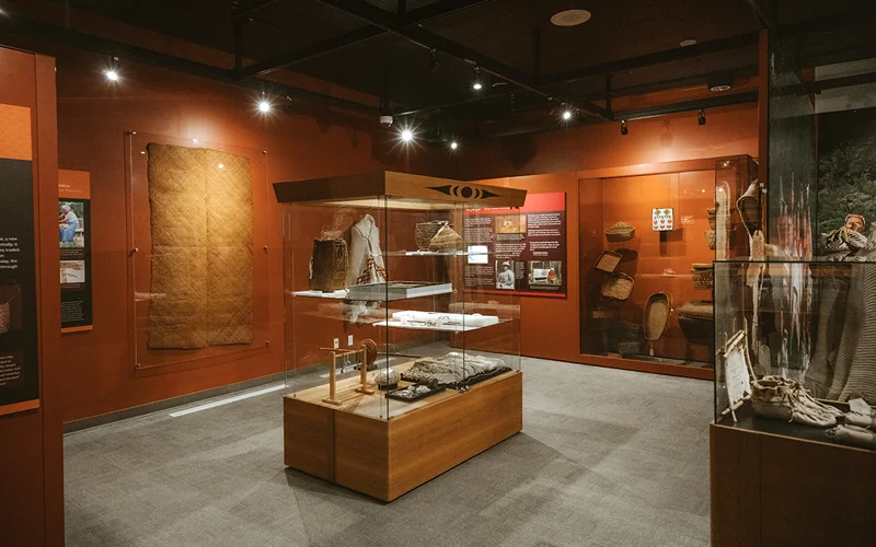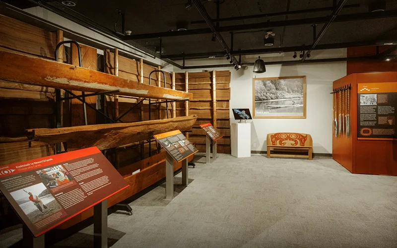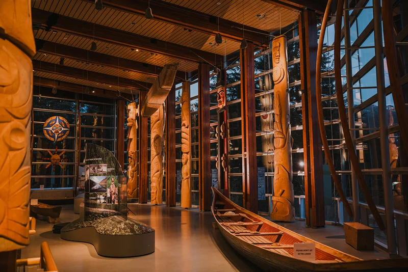 Alongside the updated interpretive content, the Great Hall and What We Treasure collections feature original cultural belongings such as baskets, blankets, carvings—including canoes, spindle whorls, welcome figures, house posts, and story poles—as well as drums, tools, and regalia (traditional clothing). These exhibits are brought to life through immersive guided tours led by Cultural Ambassadors, who share personal stories and lived experiences that deepen visitors’ understanding of Squamish and Lil’wat cultures.