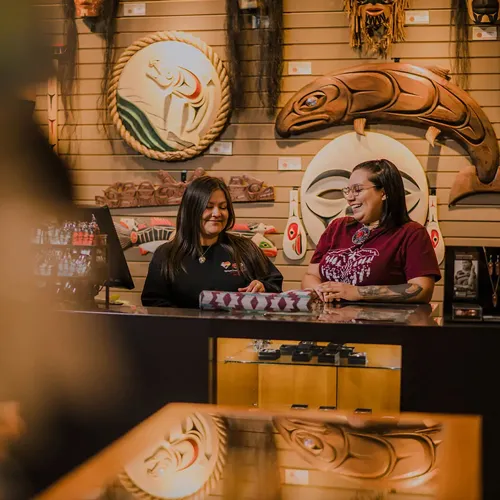 Shop Online, or explore our Gallery & Gift Shop at the Squamish Lil’wat Cultural Centre in Whistler and connect with our Sḵwx̱wú7mesh and Lil̓wat7úl hosts. We look forward to hosting you!
