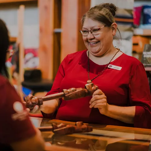 Experience service from our knowledgeable cultural ambassadors who educate our guests about the stylings and traditions of authentic Indigenous handcrafted art and design. Sharing product information about our wide selection of art and merchandise, let our sales staff assist you in finding that special piece.