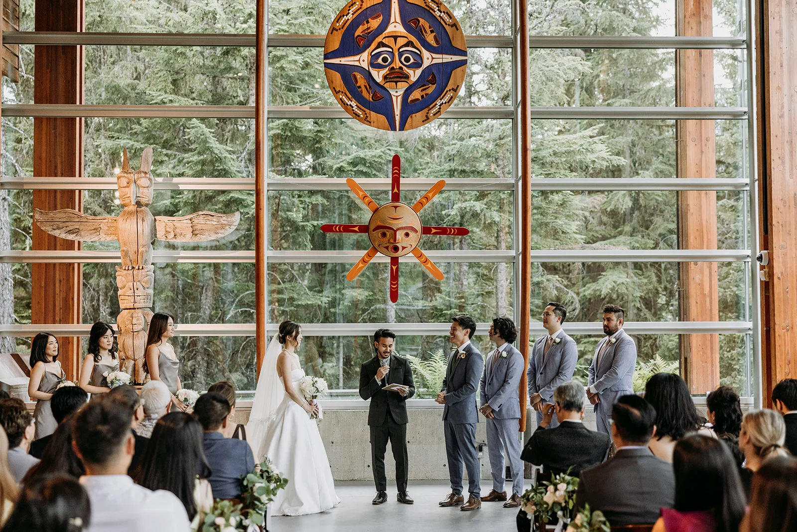 The Squamish Lil’wat Cultural Centre offers an unparalleled wedding experience in Whistler, blending natural beauty and cultural richness. Designed to celebrate the marriage of two distinctively different nations, our Cultural Centre is a natural setting for the coming together of families celebrating new partnerships. That’s why we are one of the best wedding venues in Whistler.